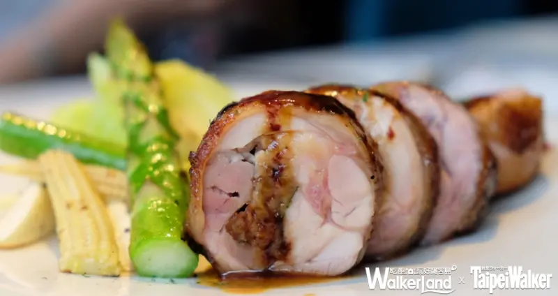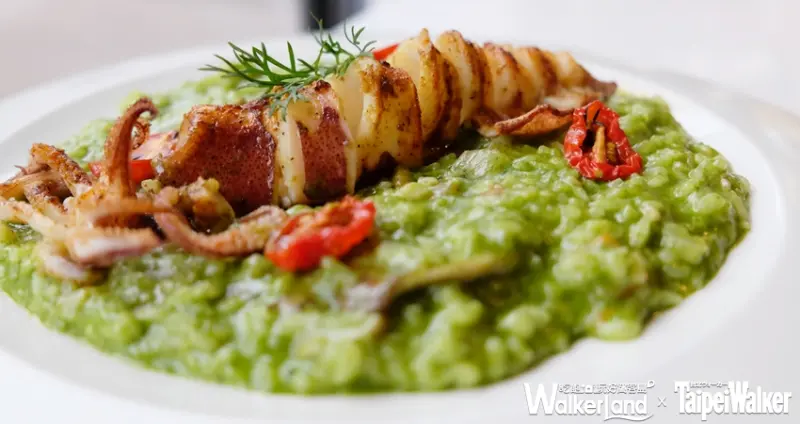 主菜則是端出主廚拿手料理,「香煎紫蘇梅雞肉捲佐紅酒醬汁」,捲入酸甜的紫蘇梅、鼠尾草、番茄,帶入酸甜口感及清新氣息。「青醬野菇燉飯佐香料烤透抽」以青醬搭配先煎後烤的Q彈烤透抽,完整保留海味鮮甜。主廚招牌菜中的「美國肋眼牛排」選用8盎司Choice等級牛肉,粉紅肉質富油花。![]()