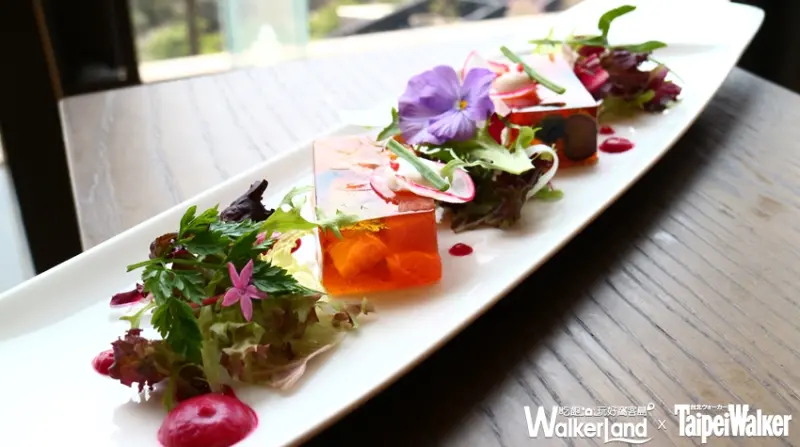 其中前菜「茴香鮭魚 綜合水果 甜白酒凍 甜菜頭油醋汁」晶瑩剔透的甜白酒鑲著手工傳統醃製的鮭魚夾雜了新鮮柳橙、葡萄柚、草莓、藍莓及珍珠碗豆,讓許多消費者在口感上享受著微甜微醺的清爽。![]()