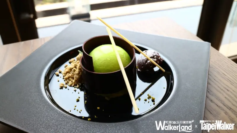 當然最讓消費者眼睛為之一亮的甜點「紅茶蛋糕 甘蔗晶凍 杏仁巧克力」。則是利用巧克力巧妙的製作成像甘蔗的外皮,黝黑翠亮裡則是師傅選用台灣甘蔗製作的甘蔗晶凍及甘蔗慕斯,最底層搭配上錫蘭紅茶的蛋糕,更是突顯出甘蔗本身的甘甜味。![]()