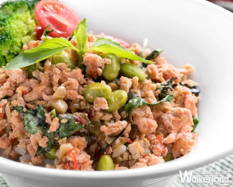 全新菜色「泰味打拋鮭魚飯」將美味與健康兼具的大量嫩鮭取代一般常見的豬絞肉,拌入大蒜、辣椒、魚露、九層塔等泰式香料翻炒,再綴上青花椰菜、小番茄等多彩蔬果,辛香撲鼻,滿滿鮭魚的鮮甜滋味在口中漾開,搭配Q彈米飯,讓人一試難忘。