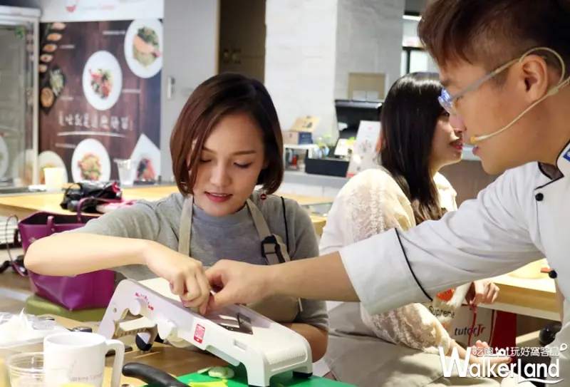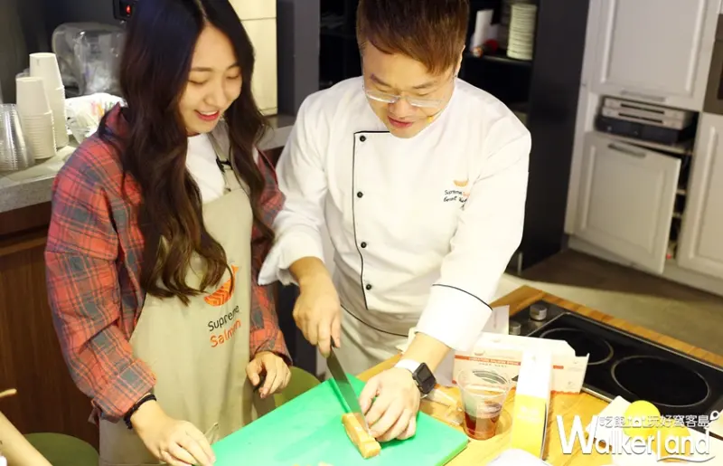 而在全台第一個以鮭魚為主題的廚藝教室「美威鮭魚廚房」裡學習,除了一進入教室裡可以感受到舒適清爽的創作空間。