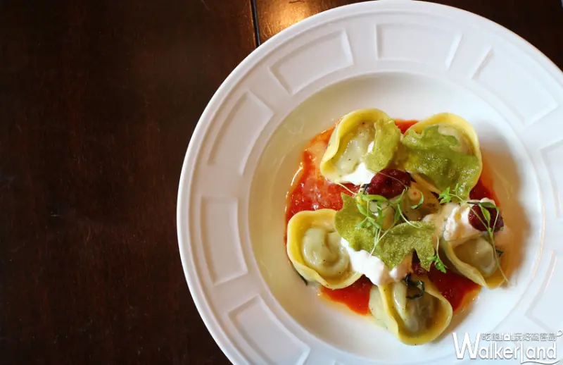 ▲Loris主廚的拿手料理「義式茄子麵餃襯布拉塔乳酪及油封蕃茄」。圖片:數位編輯林志豪 攝。![]()