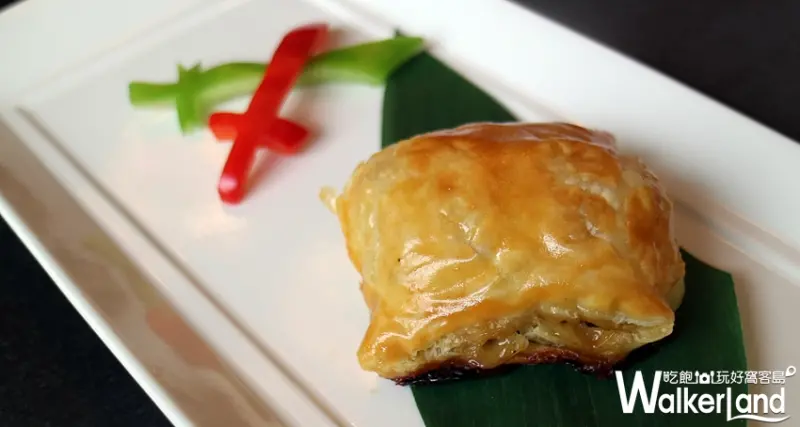 本次最讓饕客們期待的「叫化雞」又稱「富貴雞」是江浙名菜,黃蓉曾烹調給洪七公所品嘗。主廚選擇肉質Q彈約2公斤重的放養土雞,去骨架後以特製辛香料食材,醃漬24小時入味備用。再將其配料(蔥段、豬肉絲、香菇、與冬菜)一同拌炒後填入雞腹中。並使用荷葉包裹在外層,用棉線綁緊,最後均勻蓋上一層厚厚以鹽水調和的耐火土,叫化雞完整包覆,設定230度高溫,烘烤2.5小時。![]()