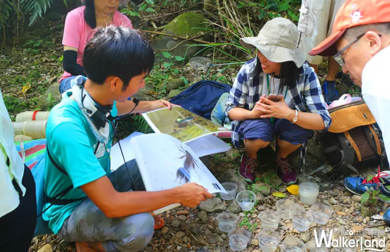 ▲由於溪裡豐富的生態,遊客們可以輕易的撈捕到許多生物。當然,在導覽團隊解說完畢之後,將統一讓生物們回歸溪流。圖片:數位編輯林志豪攝影