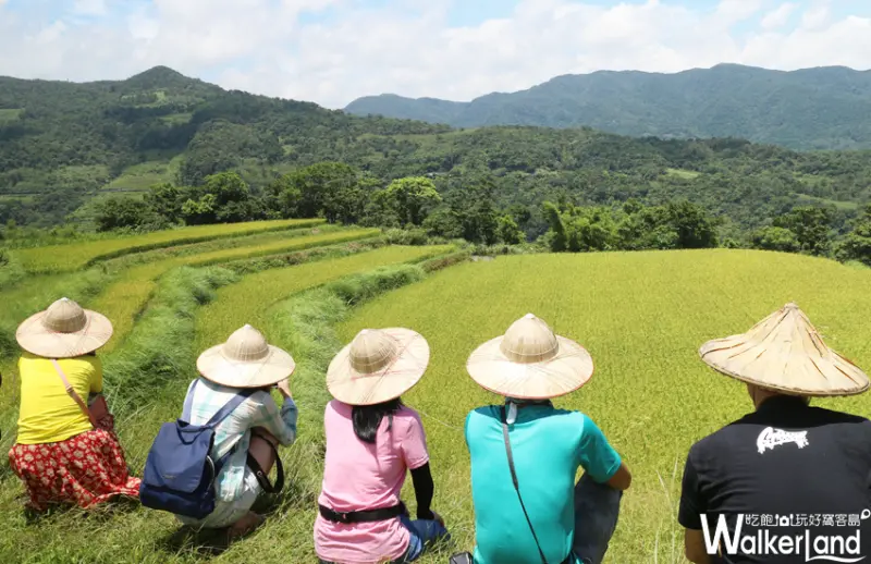 ▲遊客們坐在禾和水梯田的田埂上,享受著稻禾的味道與景色。圖片:數位編輯林志豪攝影