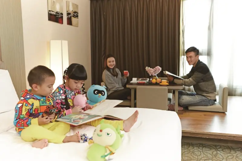 專門為親子同樂所規劃的飯店設施和服務,貼心照顧每位家庭成員的需求。以住宿房型來說,約14坪的寬敞空間內,除了兩張雙人床外,還附加一張沙發床或和式空間,即使4人同住也不顯擁擠。而各別的房間位置能欣賞到截然不同的景觀視野,喜歡自然景觀的人,可選擇能夠俯瞰整座皇家花園美景,或是清晨欣賞日出、夜晚則可遠眺市景和點點星光的家庭房;至於喜歡沉浸於歡樂氛圍中的人,那飯店兩端的經典套房就絕對是入住首選,從房內90度的超廣角落地窗,可清楚眺望探索樂園或馬拉灣與Outlet Mall的景致,不需要踏出房門就能夠時時刻刻感受度假的悠閒愜意。