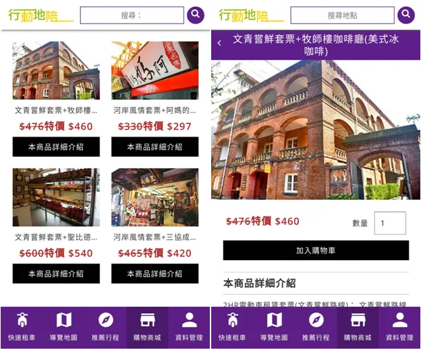 編輯貼心小貼士:開啟「行動地陪」APP中的購物商城功能,就能以優惠價線上訂購牧師樓咖啡廳的特色店家商品,以及相關遊程票券之線上購買及支付。