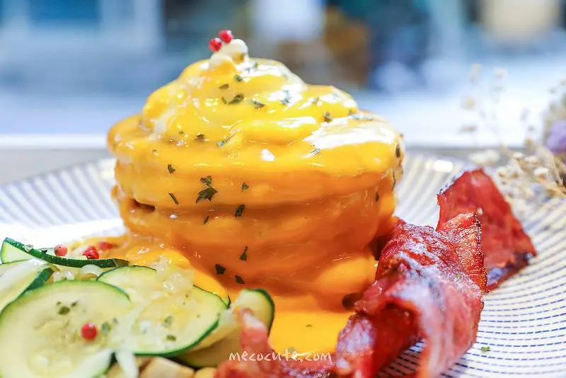 看那邪惡的小瀑布,起司在煎餅上失控的模樣直叫人瘋狂。桌的水波蛋起司煎餅熱呼呼的模樣實在讓人流口水,一層一層的煎餅被起司包覆形成小山壁,一旁還有櫛瓜跟培根陪襯著,顏色豐富,非常吸引人。<全文介紹及店家資訊>![]()