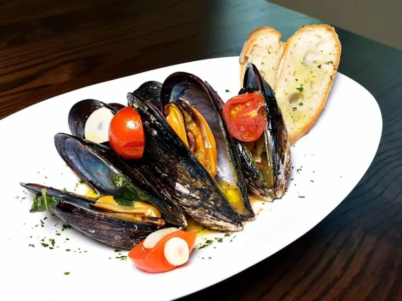 淡菜昨天一早才剛從馬祖空運過來正新鮮,一盤約有五六顆,每顆蛤肉都飽滿又肥美。白酒醬汁很香但略鹹,建議把大蒜麵包泡進去,等吸附湯汁之後再吃,相當美味!<全文介紹及店家資訊>