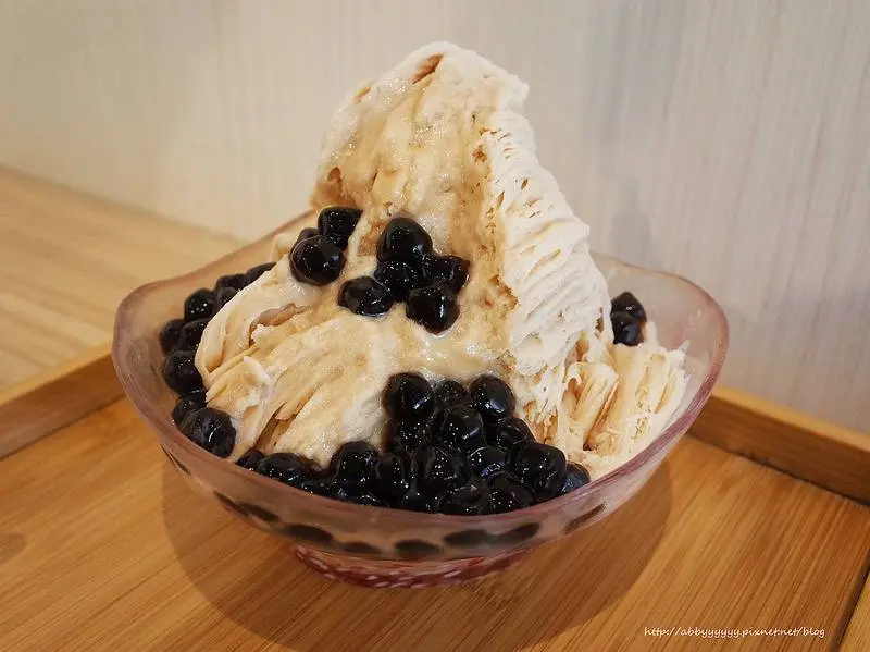 台18珍奶顧名思義由台茶18號製成,除了奶茶雪花冰外,還有煉乳跟珍珠一起在這個木製的托盤上,吃了一大口奶茶雪花冰之後,口中滿滿茶香,才心滿意足地再將珍珠加入<全文介紹及店家資訊>