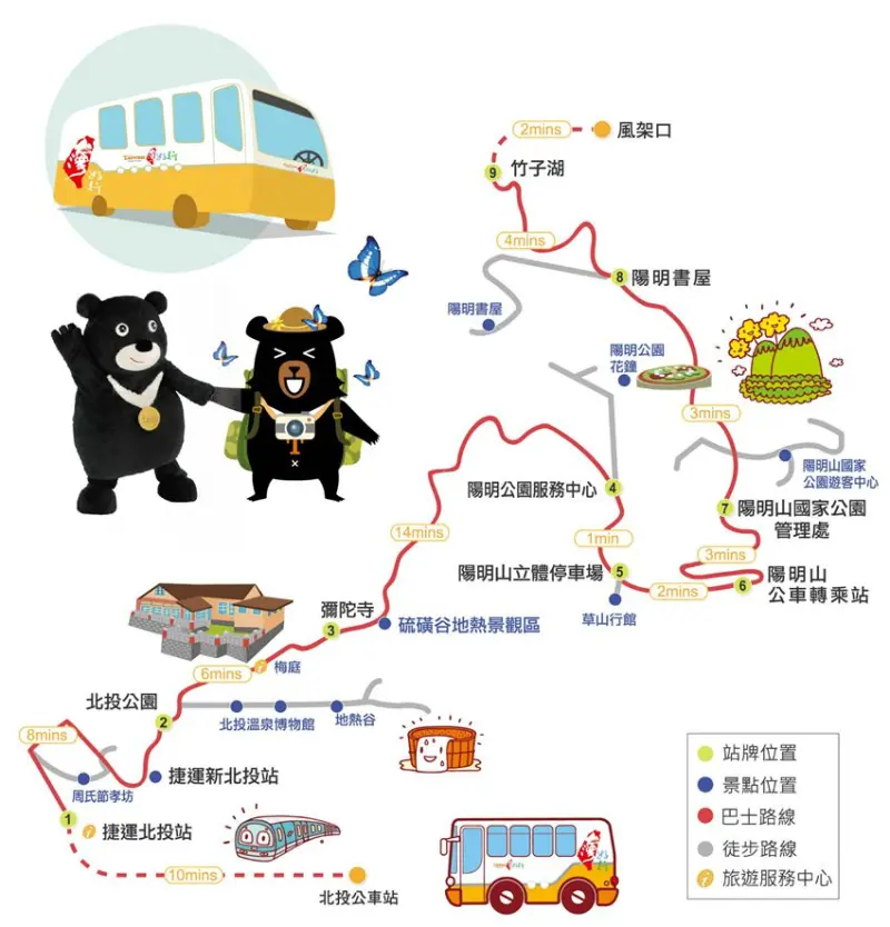 「台灣好行旅遊服務」是專為旅遊景點接駁的公車服務,不想開車或參加旅行團的遊客們,非常適合用來行規畫行程、輕鬆出遊。而「台灣好行 北投竹子湖線」是臺北市第一條加入台灣好行的公車路線,從山下的北投到山上的陽明山、竹子湖地區,沿途行經北投公園、硫磺谷、草山行館、陽明書屋及竹子湖等熱門景點,蘊含著豐富的人文景觀、自然生態,非常值得旅客到訪一窺究竟。![]()