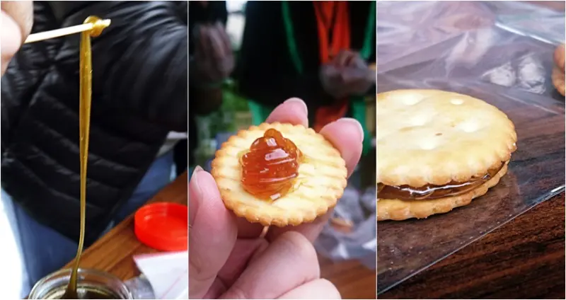 由竹柏苑所提供的麥芽糖餅乾DIY,在一罐罐拉起無限牽絲的古早味麥膏中,將其包夾於小圓餅乾之中,這就是小時候最懷念的味蕾啊!竹柏苑於各處搜得優良麥芽草,在磚造爐灶上以大鼎配上柴火燃燒製造麥芽膏,是一般少見的古法製製造!