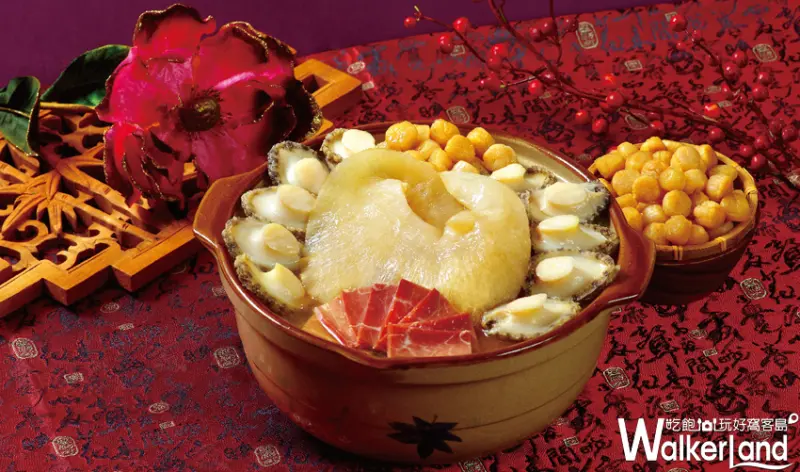 此外,更有奢華體面限量的「土雞瑤柱燉排翅」單點每盅NT$8,888、古法秘製「一品佛跳牆」單點每甕NT$3,888等,多款豐美單點年菜自NT$150起,使闔家大小齊聚共享團圓之樂!![]()