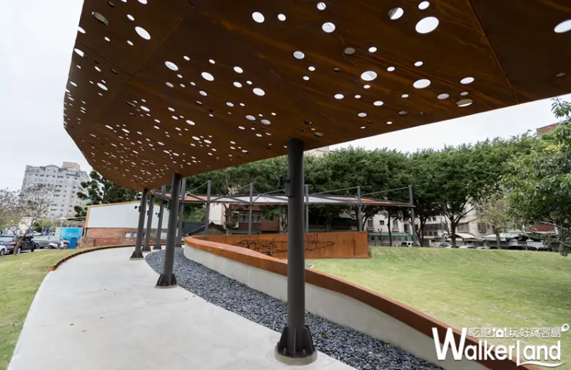 東大飛行公園以黑蝙蝠中隊執行任務的特點為設計主題,規劃入口意象、飛行記事、星空航道、夢想之翼、飛行廣場、聽見夢想與新月椅等7大裝置藝術,如:以弧形鋼板鏤空的「星空航道」,營造出日夜光線撒落的光影、以長條鋼板打造「夢想之翼」雷射切割出飛機線條,營造飛機翱翔於蒼穹意象,讓東大飛行公園成為歷史與遊憩兼具的城市綠地。![]()