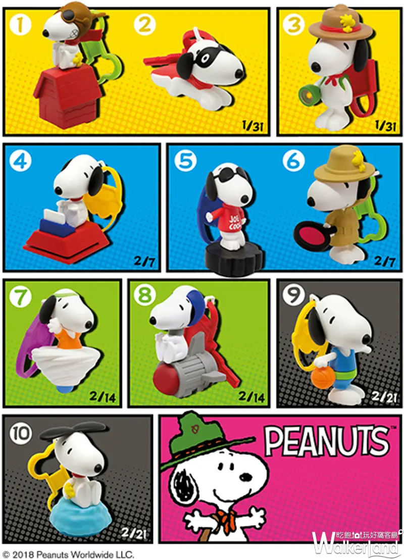 麥當勞歡樂不間斷!自1月31日起連續4週,麥當勞快樂兒童餐隨餐將附贈史努比玩具,可愛的史努比變身飛行員、蒙面俠、作家等10款角色,每款玩具另有讓人驚喜的互動機關,喜愛史努比的消費者千萬別錯過。以上相關活動機制皆公布於官網。![]()