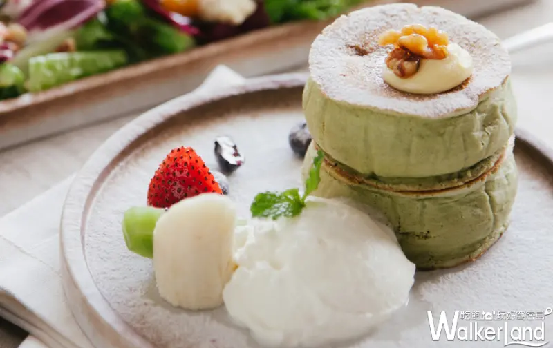 另一道足以融化鐵漢鋼心的萌系甜點「小熊樹提拉米蘇」,呆萌黑白巧克力小熊分坐在樹幹及抹茶草地上,讓人直呼真心不騙好拍好吃超推薦!最後一道必點女神系厚鬆餅,更有著如雲朵般化開的輕柔口感。![]()