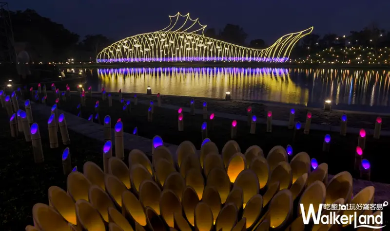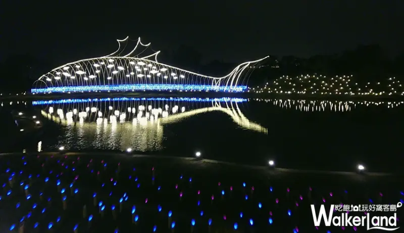 並以傳藝園區為基地,散播藝術的種子,承先啟後傳承下去。除了魚耀隧道,今年更在園區草地上裝置竹燈,取竹報平安之意。遍布在草地上的竹燈宛如點點星芒,與傳藝夜景相輝映。![]()