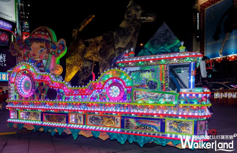 傳統藝閣花車,有西門在地年輕藝術家的塗鴉、刺青概念的創作融合其中,潮流與傳統藝術的結合作品。