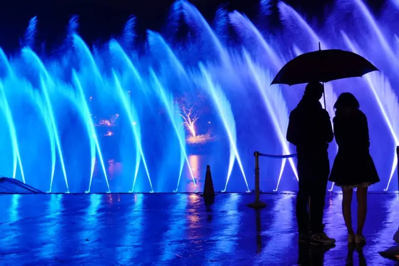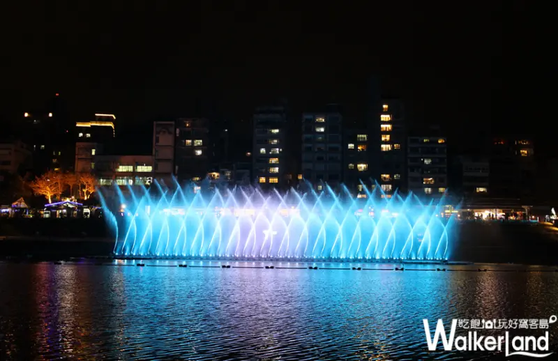 想要近距離體驗氣勢磅礡水舞的最佳地點,就是碧潭河岸旁的行人步道區。本次水舞裝置升級,不但整體噴頭數量及密度更達去年度1.5倍,且有高壓噴氣泉展現高達30公尺高的水柱。若觀賞時河岸風勢較大,民眾也需注意也許有被些微水花淋濕的可能性。另外,高壓水柱也會伴隨如煙花「砰」的聲音,因此在河岸旁觀賞的民眾也要有心理準備,體驗最逼真的現場震撼體驗。(本圖由新北市政府提供)