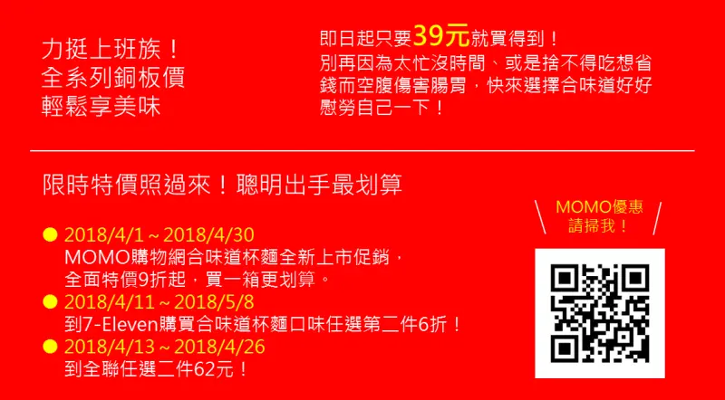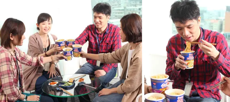 編編要來老王賣瓜一下,話說這個「合味道」杯麵,它可是世界上第一杯杯麵哩~ 自1971年上市發售以來,一直深受消費者歡迎,是全球高人氣商品,它以方便性為首要考量,免撕調味包、掀開杯蓋即沖與容易一手拿取食用的設計,只要3分鐘就能讓你快速飽餐一頓!甚至還貼心考慮到勞碌上班族怕手髒髒的麻煩、連走到垃圾桶旁都懶懶的任性,日清還以專門的技術,克服了湯粉容易潮濕的特性,創造出不需要另外撕開調理包的設計巧思,即沖即食又可以優雅不用手髒髒,也難怪它真的是辦公室陪你奮戰的專屬好夥伴啊啊啊!