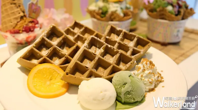 除了經典款冰淇淋之外,現點現烤的「旭日東昇冰淇淋鬆餅」也是此次新品之一,抹茶鬆餅融入Q彈小麻糬搭配期間限定的雙倍抹茶冰與檸檬牛奶冰,成為午後休憩的最佳首選。飲品部分也延續厚抹茶風味的概念,推出「濃抹茶雪溶奶茶」將雙倍濃抹茶冰和古典英式紅茶蹦出新滋味。![]()
