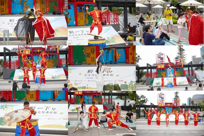 除了這些!重點來了!既然是臺灣戲曲中心所舉辦的活動,現場戲曲表演可不能少!活動當天,臺灣戲曲中心更邀來相關國內知名戲曲表演團體,輪番上陣為大家帶來精彩的演出!從最經典的相聲、熱鬧的客家採茶戲,還有結合傳統與現代的美女國樂團,到舞台下方可近距離欣賞的長嘴壺、目不暇給的川劇變臉等節目,都讓野餐當天的活動精彩豐富又熱鬧!