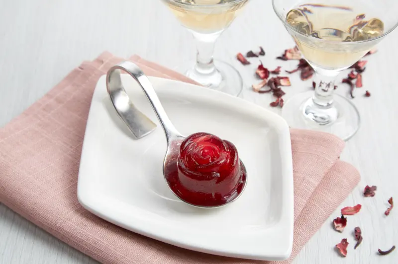 色澤有如紅寶石般的海鮮香檳凍,選用上等紅酒、香檳搭配豐富海鮮、鮮蔬及紅酒洋蔥製作而成,口感清爽、香氣迷人,堪稱餐盤上紅色的誘惑!
