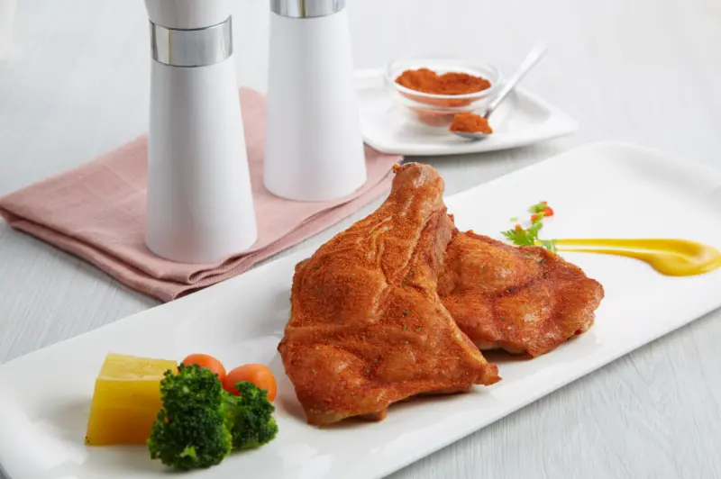 風味烤雞絕對是不可錯過的一道人氣美食,選用兩隻帶骨雞腿排,以特調墨西哥香料醃泡完整12小時,再以蒸烤箱烘烤至全熟,口感皮脆肉嫩。