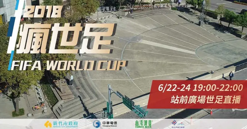 因應2018年世足賽風潮,新竹市政府與民間企業一起合作,從6/22~6/24連續三日在新竹市的站前廣場直播世足賽。每日晚上七點整入場,八點準時看球;而現場打卡的民眾也可以免費兌換台灣啤酒或加油棒。新竹市長林志堅熱烈邀請民眾在可容納千人以上的站前廣場,觀賞高畫質畫面呈現精彩賽事,一起吶喊瘋世足吧!![]()