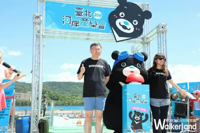 柯市長今日(7/14)與熊讚一起帶領小朋友參加「2018臺北河岸童樂會」,並體驗「熊讚暴龍對戰水滑梯」,柯市長率先從高逾6公尺的「熊讚暴龍對戰水滑梯」滑下,雖全身濕透,卻博得全場歡呼聲,而柯文哲也大呼過癮。