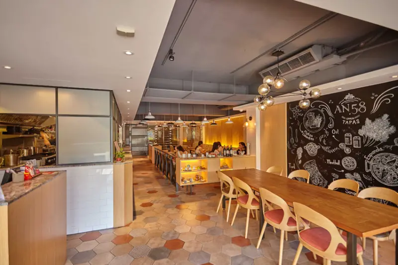 AN58 西班牙創意料理是一間以西班牙式熱食為主的精緻優雅複合式餐廳,呈現道地風味並推廣慢食概念。此次主廚以印尼營多麵搭配馬鈴薯烘蛋以及西班牙狂歡海鮮營多麵要帶給饕客們前所未有的美食驚喜體驗。