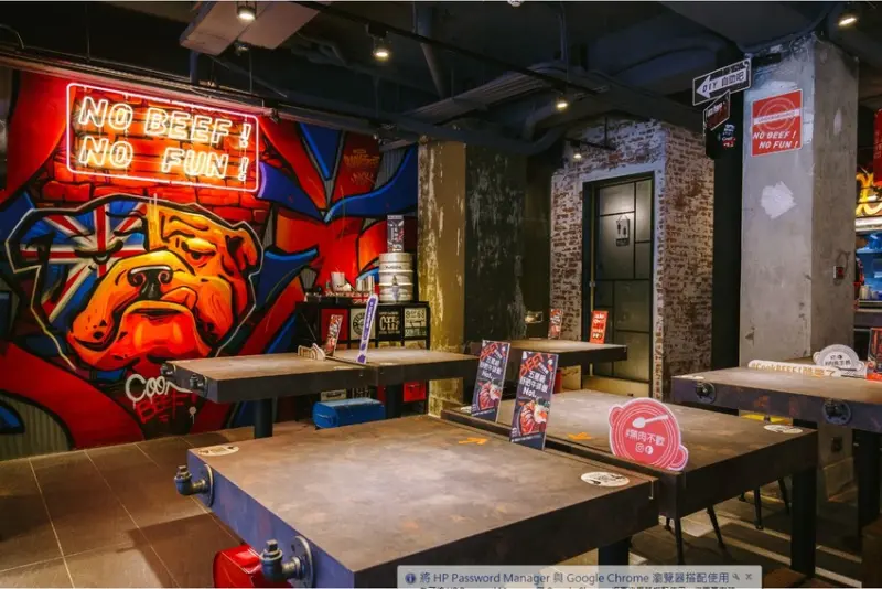 CooK BEEF! 酷必門店風格與台灣新銳設計師- 涂設計、後街藝術跨界合作,再搭配粗獷工業風的餐具呈現藝術張力,一進店可感受輕鬆有個性的氛圍,牆面諾大顯眼名叫「酷客」的英國鬥牛犬也成為顧客拍照打卡的新地標。![]()