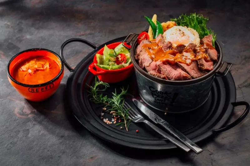 將西式牛排mix東方米飯,獨創一碗大滿足的Steak Rice Bowl東西合併的牛排新吃法。選用USDA Choice級牛肉,以slow cooking低溫烹調技術舒肥手法,搭配精心鑽研出的獨門231吃法密技,口口驚艷,快速滿足大口吃的現代肉食男女。