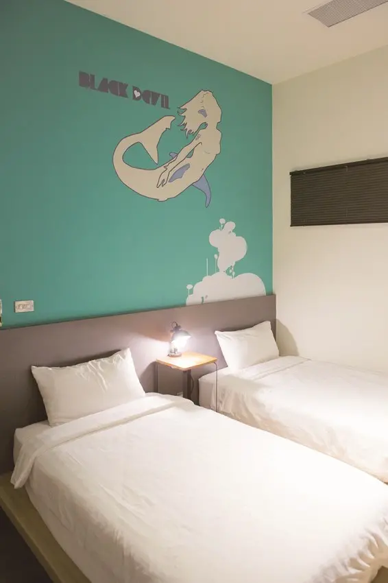 店主人蔡正男是一位熱愛小琉球生態的使者, 因而打造正好友生態環保旅店,店內不提供一次性用品、以簡約風設計打造而成。為了融入在地街景與不打擾老一輩人的生活習慣,他打趣地跟設計師說:「旅店門面要低調到讓人不小心『騎過頭』⋯⋯但裡面會是另一番風景。」走進旅店,海龜造景極為可愛,牆面設置的小琉球地圖與螢幕播放的小琉球美景,都讓人等不及一一探訪。![]()