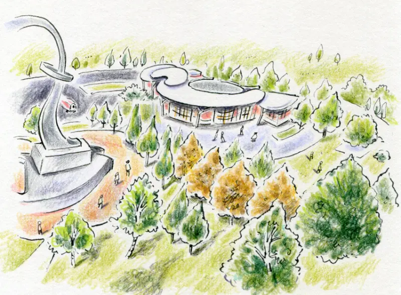 (圖為古坑綠色隧道交流驛站為插畫師張瓊文所畫)