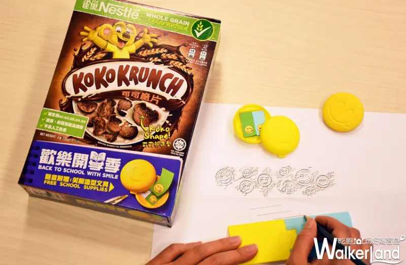 配合九月開學季,雀巢早餐脆片推出歡樂開學季限量包裝,雀巢可可脆片、雙色可可脆片、美祿可可球、蜂蜜脆片隨盒贈送專屬的笑臉造型文具組,共有「表情拓印直尺」、「笑臉橡皮擦」、「趣味便利貼」三款每盒一款隨機出貨,各大量販超市通路都有販售,快來蒐集全套,讓上學更有趣。