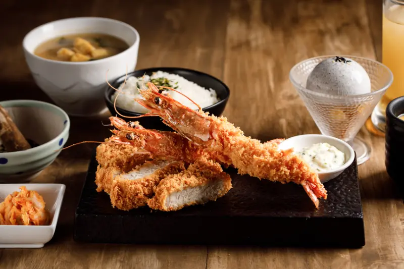 2016年人氣菜色強勢回歸『海老里肌豬排』,引不少忠實顧客到店回味。選用優質里肌心,外酥內軟,再搭配金黃酥脆的草蝦,是道海陸風味的創意料理。