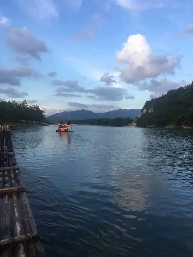 楠溪江以水秀、岩奇、瀑多、村古、灘林美而名聞遐邇,是中國國家級景區當中唯一以「田園山水風光」見長的景區;楠溪江水清澈見底,秀麗多姿,遊魚碎石,歷歷在目。6人一组搭乘竹筏穿好救生衣之後,船工撑杆離開碼頭。開始漂游江上,一路層巒疊翠,風景如畫,令人心曠神怡,享受寧靜片刻,天人合一的境界。