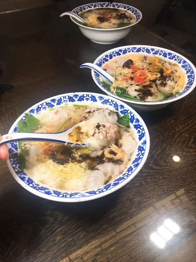 在台灣吃到的餛飩是改良版的,溫州餛飩皮很薄,選用新鮮瘦肉作餡,配料更講究,有紫菜、蛋絲、肉鬆、 浸酒蝦米,湯清見底,形似花朵,味美爽口。