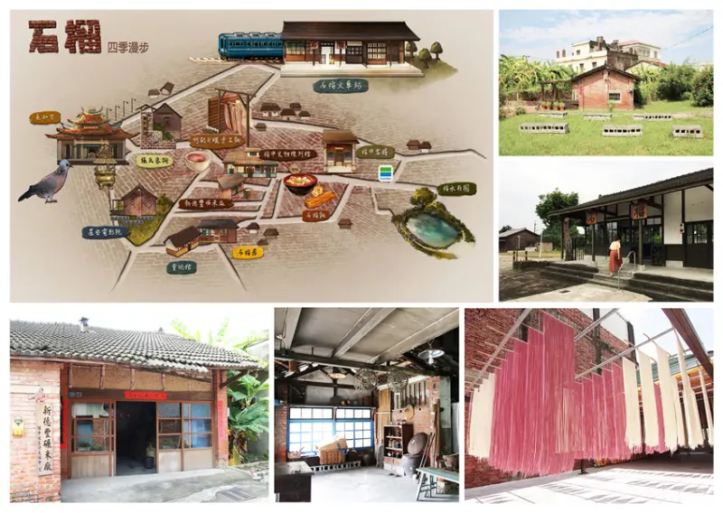 石榴車站(歷史建築)、何記日曬手工麵(產業體驗)、榴中社區人文聚落(新德豐碾米廠、榴中文物陳列館、榴中客棧、星空電影院)。