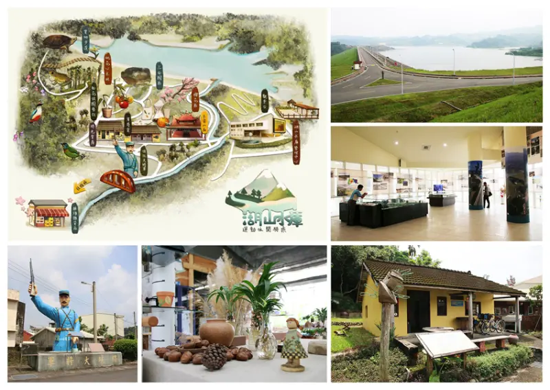 湖山水庫(壩頂觀景、生態導覽)、松花坡園藝社(葉拓體驗)、農再社區(石頭公、木工坊、時光寶盒、玉當山)。