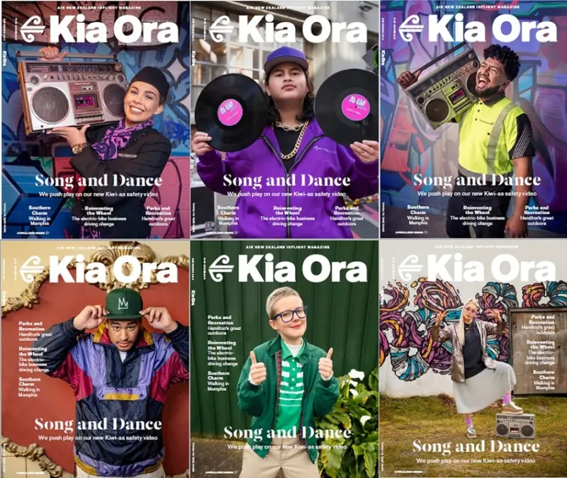 即日起,本飛行安全宣導短片除了可於線上觀看外,紐西蘭航空目前已正式開通之台北─奧克蘭直飛航線以及各國際/國內航班上也將同步於機上播映。為慶祝最新短片的發佈,紐西蘭航空11月號的「Kia Ora」機上刊物也同步發表六款不同封面,展現影片中不同主角的風貌。這將會是機上刊物史上第一次於同一期刊物使用多款封面,為創意短片的發佈增添話題!![]()