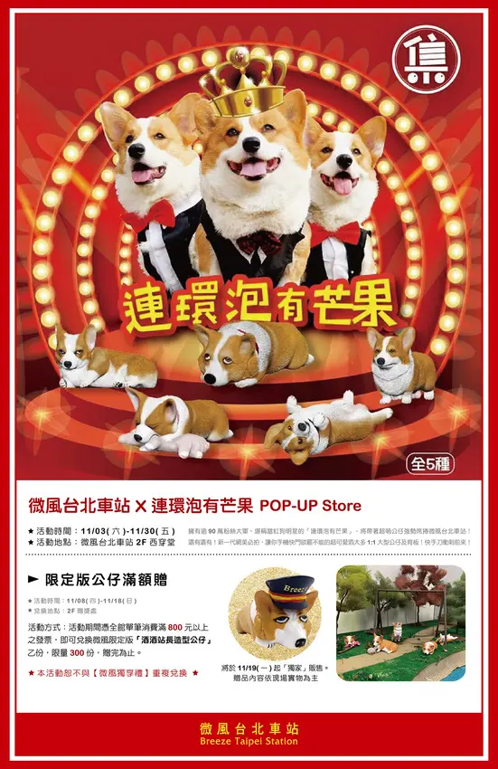 擁有逾90萬粉絲大軍、堪稱當紅狗明星的「連環泡有芒果」,將帶著超萌公仔強勢席捲微風台北車站!還有還有!新一代網美必拍,讓你手機快門欲罷不能的超可愛酒大多1:1大型公仔及背板!快手刀衝刺前來!![]()