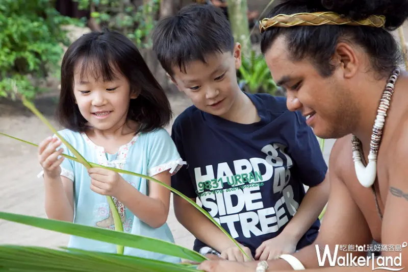 在傑夫帕哥查莫洛文化村除品嚐椰子,還能學習簡易的椰子葉編織,在拉提石探險谷園區就可以找到這種傳統編織技術的現場示範,而且乘船遊覽和賞豚之旅中,船員會不時穿梭在甲板上,編織出髮帶、鮮花以及小動物造型編物贈送給大家。