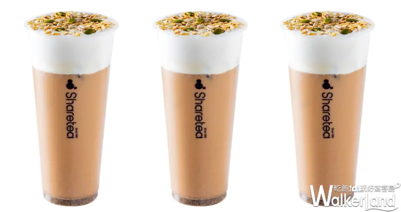「秋霜堅果奶蓋」以Sharetea經典紅茶茶湯結合養生南瓜子紫米堅果飲及香醇豆漿,滋味溫潤迷人,加入濃厚奶蓋後,口感更顯得綿密細膩,最後灑上脆口的葵瓜子及燕麥,豐富了味蕾層次。![]()