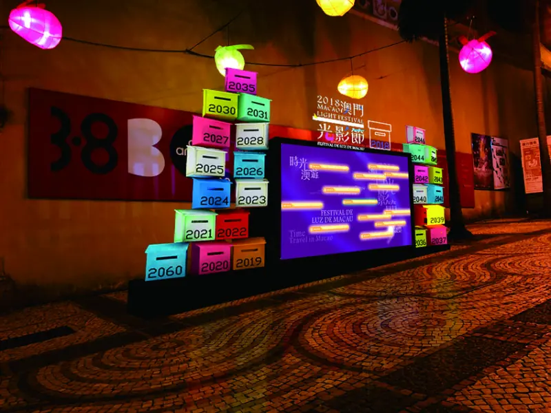 “2018澳門光影節─時光澳遊”將於12月2至31日晚上7點至10點上演(每晚最後一場的光雕表演於晚上9點50分開始,而“南灣.雅文湖畔”的燈飾裝置將於12月31日晚延長至凌晨0點10分結束)。今年光影節將以時間為主軸,結合澳門美食、人文、建築和文創等元素,展現澳門中西文化交融的精髓,刻劃澳門人的成長印記及回憶,帶領觀眾展開“時光澳遊”。