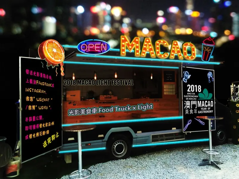 而今年也首度設立光影美食車提供發光飲品及紀念品換領服務。旅客需按指示完成不同的光影節紀念品換領活動,即可在設置於3個地點的光影美食車換領發光飲品及精美紀念品。同樣首次引入的美食夜市將設於北帝廟前地,售賣澳門特色小吃。此外,3條路線上將設有諮詢站,提供光影節資訊及紀念品換領服務。