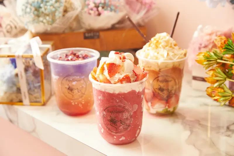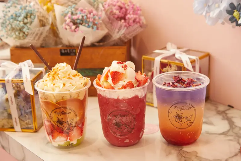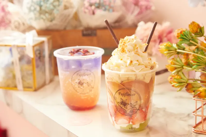 將花藝與廚藝完美結合的 FUJI Flower 除了提供花藝教室及客製化蛋糕的服務,同時多方經營 FUJI Flower cafe、義法餐廳與 FUJI Flower Shabu-Shabu,近期更在信義商圈 ATT 4 FUN 開設了以外帶服務為主的輕食飲料店,將新鮮水果、鮮奶油與小鬆餅層層堆疊,以日常為靈感所創的鬆餅杯,方便步調快速的現代人外帶食用;好拍又好喝的繽紛漸層氣泡飲以及夏季限定的搖擺冰沙還有即將推出的冬季暖心熱飲, FUJI Flower福卉期待大家能夠在花卉當中感受放鬆,利用五感感知花草氣韻,落實美的每一天。