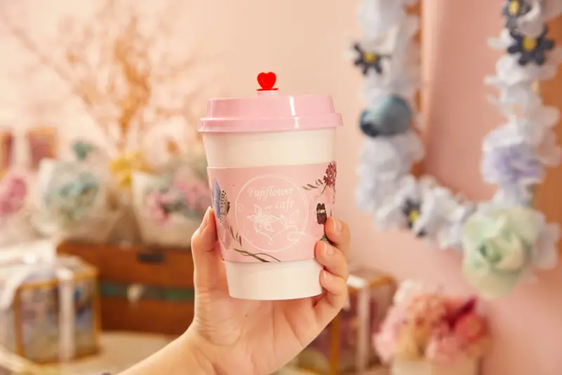 溫暖的熱飲裝在粉紅外帶杯拿在手中超療癒!超級適合當成打卡道具~