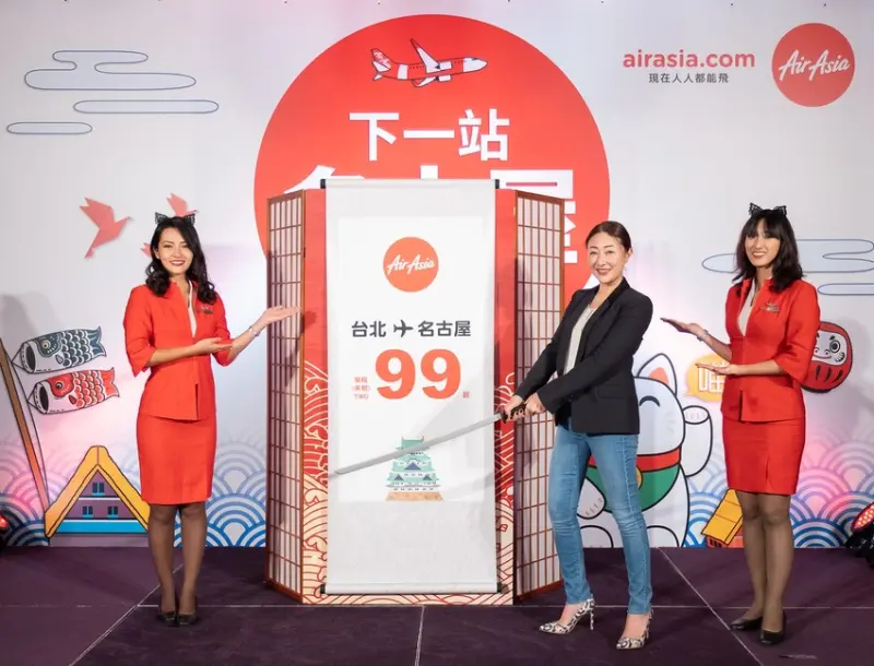 AirAsia目前共有8條從台灣出發的直飛航班,分別為台北/高雄-吉隆坡、台北-沙巴、台北-馬尼拉、台北-宿霧、台北-克拉克航線,以及甫於10月開航與開賣的台北-清邁、高雄-馬尼拉、台北-大阪航線,台北-名古屋將是台灣出發的第10條直飛國際航線,首賣震撼價單程未稅新台幣99元起,2018年12月24日中午12點起可預訂航班,出發日期為2019年2月1日至2019年3月30日。